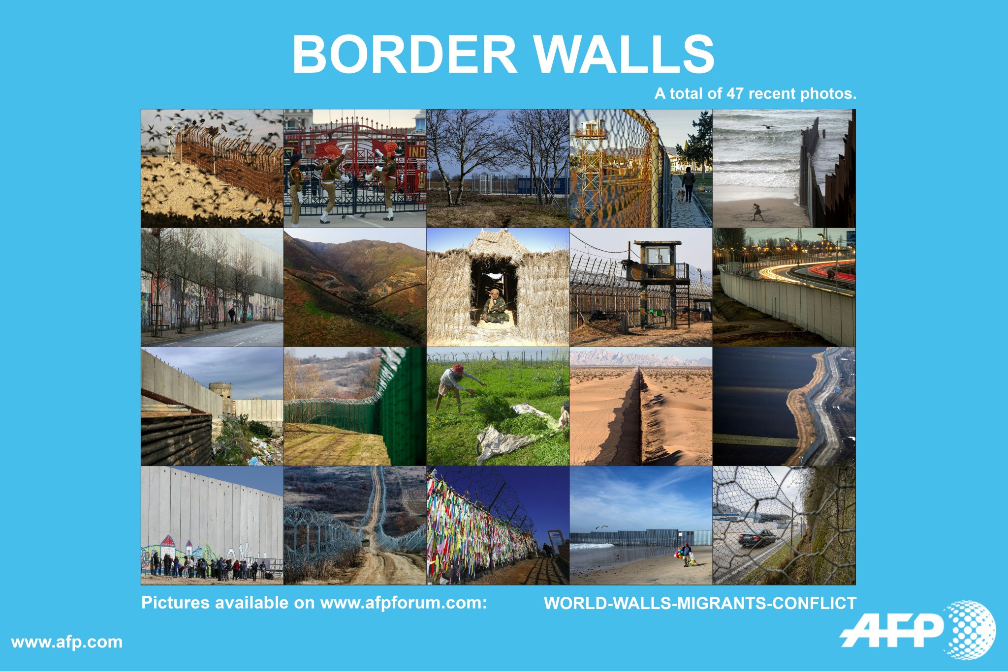 さきほどのハンガリーほか、スロヴェニア、オーストリア、マケドニア、ギリシャ、ブルガリア、スペインとモロッコ間(セウタ: Ceuta)イスラエルとパレスティナ、サウジアラビアとイラク、インドとパキスタン、朝鮮半島、等々…